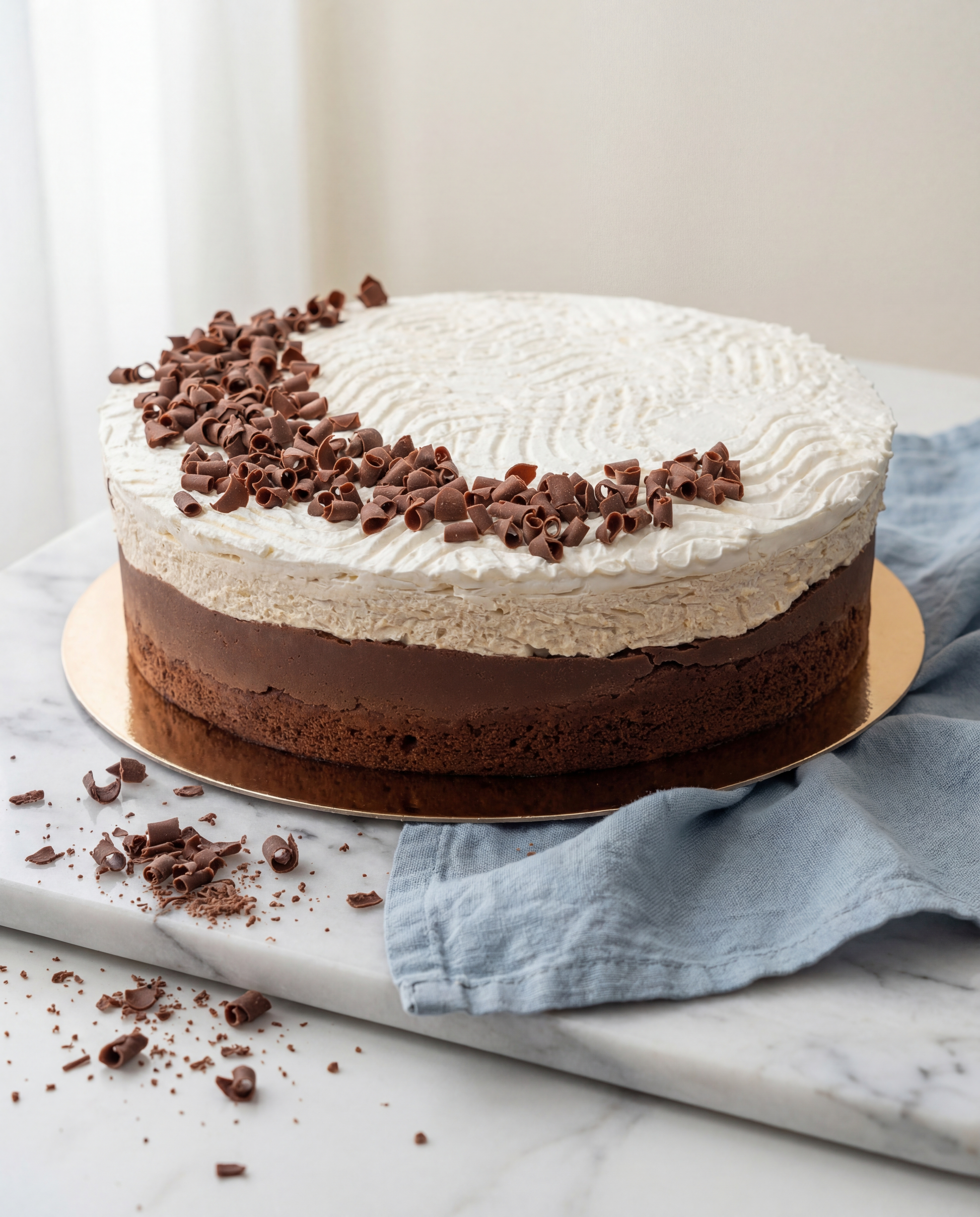Mocno czekoladowy biszkopt, masa czekoladowa z bananami w środku, następnie aksamitny lekko karmelowy krem zwieńczony u góry słoną kajmakową masą i bitą śmietaną.