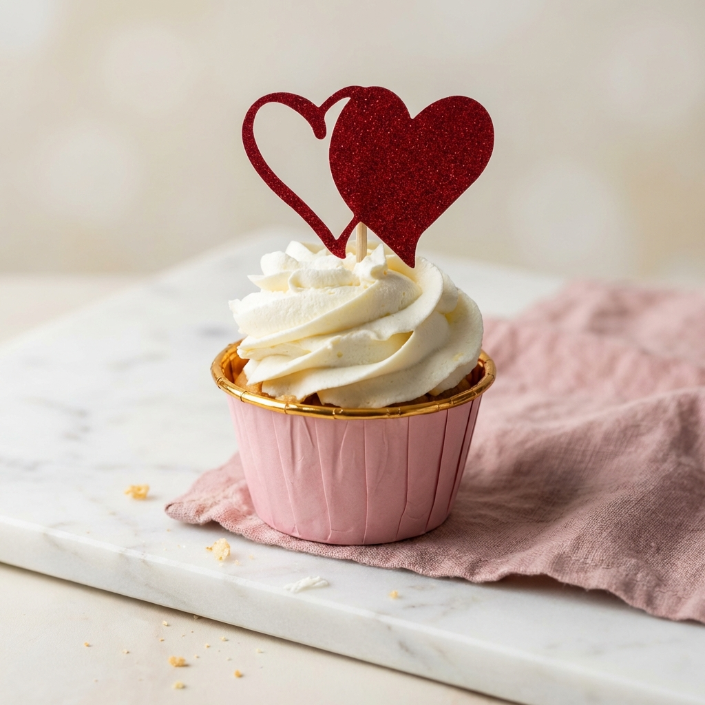 Puszysta waniliowa muffinka z odrobiną aromatycznej konfitury mango, zwieńczona aksamitnym waniliowym kremem.